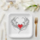 Artistically painted red heart with angel wings grey, decorated with black smooth contour.