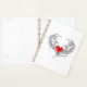Artistically painted red heart with angel wings grey, decorated with black smooth contour.
