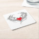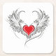 Artistically painted red heart with angel wings grey, decorated with black smooth contour.