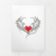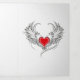 Artistically painted red heart with angel wings grey, decorated with black smooth contour.