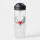 Artistically painted red heart with angel wings grey, decorated with black smooth contour.