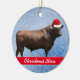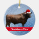 Red Angus Bull and Santa Hat Ceramic Ornament