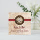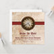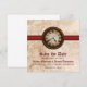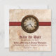 This Antique Clock Save the Date Announcement features a vintage timepiece prominently centred on top of a metal ball chain and sleek dark red striped border. The distressed look of the grungy paper texture background completes the antiqued feel of this unique design. This offbeat save the date invitation is perfect for announcing your vintage or steampunk inspired wedding. Easy to customise, simply add your wedding details in the spaces provided. Click on "Customise It" to find additional options to personalise this design.