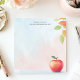 This beautifully designed personalised notepad features a vibrant red apple resting on a soft pastel background with warm autumn leaves in the corner. The watercolor-inspired design gives it a timeless and cosy feel, perfect for teachers, students, and anyone who loves classic stationery with a seasonal touch. Personalise the text at the top to make it a thoughtful gift for educators, writers, or daily note-taking.