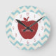 Red Apple Aqua Chevron Teacher Clock