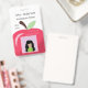 A white vertical photo ID badge for staff members of your school with part of a red apple and a thin frame around the picture . Personalise it with the employee's photo (a square one works best ) , name , job title , year and school name on the front . Make sure to customise it with your establishment's name and address on the back . The white rectangle is designed for the employee signature or for a code bar . A metal clip , a lanyard or a retractable are available for purchase in addition to the badge if you need one .
