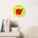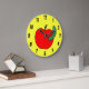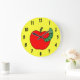 Red Apple Green Worm Large Clock