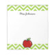 Red apple notepad for teacher | Personalised name. Teaching gifts. Vector chevron pattern. Zig Zag design.
