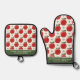 Red Apple Pattern Personalised Name Oven Mitt & Pot Holder Set
