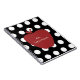 A gift for teachers featuring an illustration of a red apple over a black background with white polka dots. Personalise with your name.