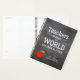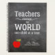 Custom teacher planner with red apple and inspirational white typography script quote "Teachers change the world one child at a time" on a chalkboard background. Personalise with your teacher's name and text!