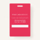 A vertical photo ID badge for staff members of your school with part of a red apple . Personalise it with the employee's photo (a square one works best ) , name , job title , year and school name on the front . Make sure to customise it with your establishment's name and address on the back . The white rectangle is designed for the employee signature or for a code bar . A metal clip , a lanyard or a retractable are available for purchase in addition to the badge if you need one .