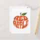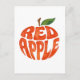 The design features the words 'Red Apple' creatively arranged in the shape of an apple with a green leaf on top. The typography is bold and colourful, giving a cheerful and vibrant impression.