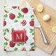 Red Apples, Blossoms Greenery Monogrammed Initial Tea Towel