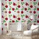 Red Apples, Blossoms & Greenery Pattern Wallpaper