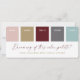 Get your colour palette swatch cards to help with planning and coordinating your wedding details, decorations, and stationery. Give them out to the wedding party, bridesmaids, or wedding planner!