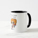 Gift this cute hair stylist cartoon mug to a female stylist you know who has red auburn hair like the caricature featured. Cartoon hair stylist hairdresser cartoon by LeahG. She is wearing a red stylist uniform. Gift this to your favourite hairdresser, a hair stylist friend who has a new job, newly graduated or is celebrating a birthday or Christmas. It's a great stylist mug gift for family or co-workers too. Add your own text to personalise this cute coffee mug for hairdressers.