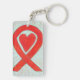 The awareness heart ribbon key chain features the art of a red awareness ribbon heart painting. The red awareness heart ribbon art keychain can be customised with personalised messages to make great awareness cause merchandise keychains for fundraisers, awareness gifts, or other special events or occasions. The meaning of the red awareness ribbon is support for AIDS / HIV, Cardiovascular (Heart) Disease, Stroke, Alcohol Substance & Drug Abuse, Blood Cancer, MADD (Mothers Against Drunk Driving), DARE (Drug Abuse Resistance Education), Haemophilia (Project Red Flag), Disaster Relief, Marfan Syndrome, Epidermolysis Bullosa (EB), Hypertension (High Blood Pressure), Love, plus more.