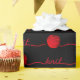 Bright red ball of yarn with knit text on black for knitter.