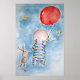 The cutest poster, with the cutest art. A baby flying in the sky with a Red Baloon and holding a bunny, that is so sweet. A great idea for a lovely present. From my original painting watercolor on paper "Red Baloon"