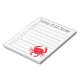 List-style shopping checklist note pad design features an original marker illustration of a red hard shell Maryland crab, with THINGS TO DO TODAY in a fun font.