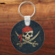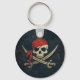 A tattered dark blue pirate flag with a grinning skull crowned by a vivid red bandanna, the fabric frayed from wind and saltwater. Cross swords lie beneath, and the entire design carries a distressed, weathered texture as if it has flown through countless sea battles. The red bandanna adds a bold splash of defiance and danger against the dark, storm-worn backdrop.