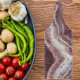Chop and dice food safely on this paddle shaped, glass cutting board that features an image of the colourful patterns of red Banded Agate. Perfect to use for wine and cheese samplings!