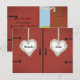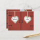 Red barn doors are decorated with heart-shaped daisy wreaths on the front of this rustic save the date postcard. The interior of the barn carries the theme through on the back. All text is easily customised.