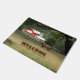 Rural image of two horses relaxing in a field. The bright red barn and the tree in the foreground frame the picture nicely.