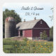 Customise these charming Red Barn Country Wedding Envelope Seals with the personal names of the bride and groom and specific marriage ceremony date. These rustic chic custom ranch style nuptial envelope seal stickers feature a quaint farm photograph of an old weathered red barn and silo with a field of yellow wild sunflowers in the foreground.