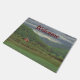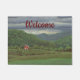 A soft pastel drawing of a rural barn in Appalachia during a summer storm adorns this customizable Doormat!
