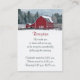 This serene winter wedding reception enclosure insert card has a snowy scene with a big red wooden barn and snow covered green hills and trees on it. There is a small brown horse visible behind the wood fence that matches the wedding invitation shown below. Add your reception details or other information to it, or change the text to make it a gift registry card or a wishing well card. Perfect for a casual or informal rustic country wedding. It is shown here on basic paper. ****PLEASE NOTE that everything will print as it appears on your monitor, so if you have typos, alignment, or sizing issues, please contact me for help BEFORE you order. If you need any other matching items, please email niteowlstudio@gmail.com.