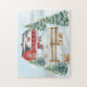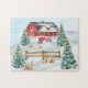 Red Barn, Red Tractor, Snow, Pine Trees Farm Scene Jigsaw Puzzle