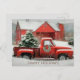Red Barn, Snowy Landscape, and Festive Tree Postcard
