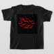 This kids t shirt features a collection of simple images of bats flying together in a cloud pattern. The bats are red and the background is black. Kids are sure to love this cute design. The design is shown on a kids black tee but is also available on a range of different colours and styles of clothing for kids, babies, women and men.