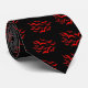 This novelty Halloween tie is covered in a collection of simple images of bats flying together in a cloud pattern. The bats are red and the background colour of the tie is black.