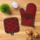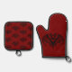 Red Bat Patterned Oven Mitt and Pot Holder Set