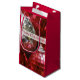 Gift bag featuring a stylish collection of glittering red and silver Christmas baubles. A customisable design for you to personalise with your own text, images and ideas. Image created using an original photograph and digital techniques.