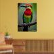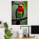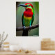Red-bearded bee-eater birds are among the most colourful and can be found on the Thai-Malay Peninsula, Borneo, Sumatra and nearby smaller islands. Like most bee-eaters they mostly eat insects but especially bees, hornets and wasps, and will actually sit motionless waiting for a meal to pass by. Predominantly green with red colouring which goes from the head down to the chest area or 'beard'.