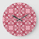 Red, beige floral, seamless wallpaper pattern. large clock