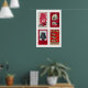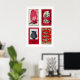 Red & Beige Matchbox Labels Grid Print, Vintage Poster