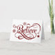 Red Believe Snowflakes Stars Calligraphy Holiday Card