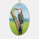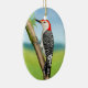 Original fine art painting of a Red Bellied Woodpecker by artist Carolyn McFann of Two Purring Cats Studio printed on a quality holiday ornament for wild bird fans.