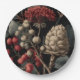 Red Berries and Exotic Seed Pods on Black Paper Plate