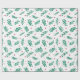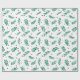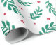 White festive wrapping paper printed with a classic pattern of watercolor green leaves and red berries. Perfect for wrappping Christmas gifts. Good choice for a winter, woodland and rustic style enthusiast.
