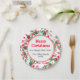 Beautiful pattern of delicate watercolor botanicals depicting cute large red berries. Customisable Merry Christmas, heartfelt wish for New Year and family name. Decorative paper plate that will enhance your festive holiday table decor.