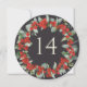 A soft warm black circular or square double-sided christmas/holiday table number card featuring hand painted red berries and eucalyptus arranged into a beautiful botanical wreath. The text is fully editable. Other designs, table number products and coordinating items are available in my store.