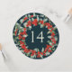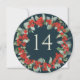 A dark green circular or square double-sided christmas/holiday table number card featuring hand painted red berries and eucalyptus arranged into a beautiful botanical wreath. The text is fully editable. Other designs, table number products and coordinating items are available in my store.