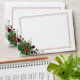 Unique, classic, trendy, pretty and decorative corporate Holiday card envelope framed and lined with burgundy wine red berries and dark green foliage wreath bouquet on a classy crisp white background.