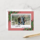 Unique, classic, trendy, pretty and decorative Holiday card. Cute Happy Holidays greeting text and room to customise or personalise with a photo, family name (or individual names) and message of your choice. Framed by Burgundy wine red berries and dark green foliage wreath bouquets on a classy coral red background.